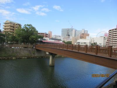 宿泊したホテルの窓から、この甲突川と高見橋を見下ろすことができました。高見橋から川の左岸は、維新ふるさとの道という遊歩道が設けられ、川沿いの加治屋町は、西郷隆盛や大久保利通ら、幕末から明治にかけての著名人が育った地域でもあります。この甲突川の下流からは、鹿児島のシンボル桜島も望むことができます。