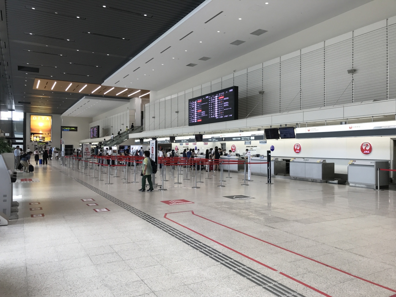 関西国際空港に比べ、市内中心部からの距離が短く、利便性が高いといえます。関西空港を発着する国内線は、北海道便と沖縄便が中心で、それ以外はほとんどこの大阪(伊丹)空港を発着しています。ターミナルはJAl便が発着する北ターミナルとANA便が発着する南ターミナルからなっています。ターミナル2階は、レストランや売店も多くあり、とてもよくにぎわっています。