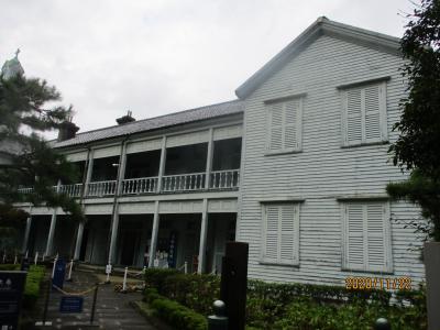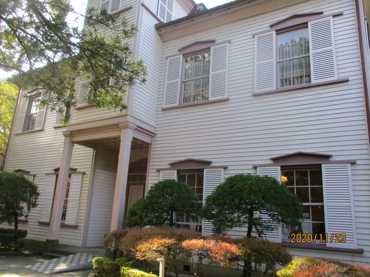 グラバー園を代表する旧グラバー邸宅が改修工事と知らず、ここまでやってきました。旧グラバー邸は、日本最古の木造平屋建て洋風建築で、幕末の貿易商トーマス・グラバーの邸宅として建てられたもです。内部は、応接室、寝室、事務室などからなっているとのことですが、中に入れず、見学用特設展望デッキから、眺めるだけでした。
