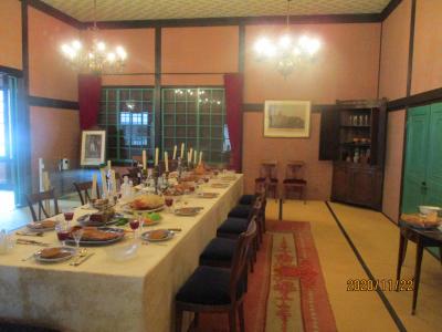 出島の中で最も大きく、人目を引くたてものです。オランダ商館長の住居や事務所、接客の場としても、用いられたそうです。2階にあがると、案内をしてくれる女性がおられ、説明を聞きながら、見学をしました。また、当時の食卓の様子などが再現されていました。