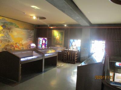 26聖人の殉教地の碑に隣接してたっています。わりと大きな記念館で、秀吉の禁教令の写しや、ザビエル自筆の書簡のほか、殉教者に関連する資料などが展示されています。日本におけるキリスト教の禁教の歴史をたどることができます。訪れる人が少ないようですが、みごたえのある記念館だとおもいます。