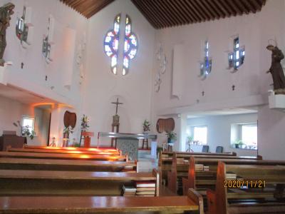 26聖人殉教地の近くにたっています。26人の殉教者が聖人に列せられて100年を記念してたてられた聖堂だそうです。この建築を手掛けたのは、ガウディに心酔していた建築家今井兼次氏で、どことなく、バルセロナのサグラダファミリアを思い起させるような感じがしました。内部は、明るくモダンな感じがしました。