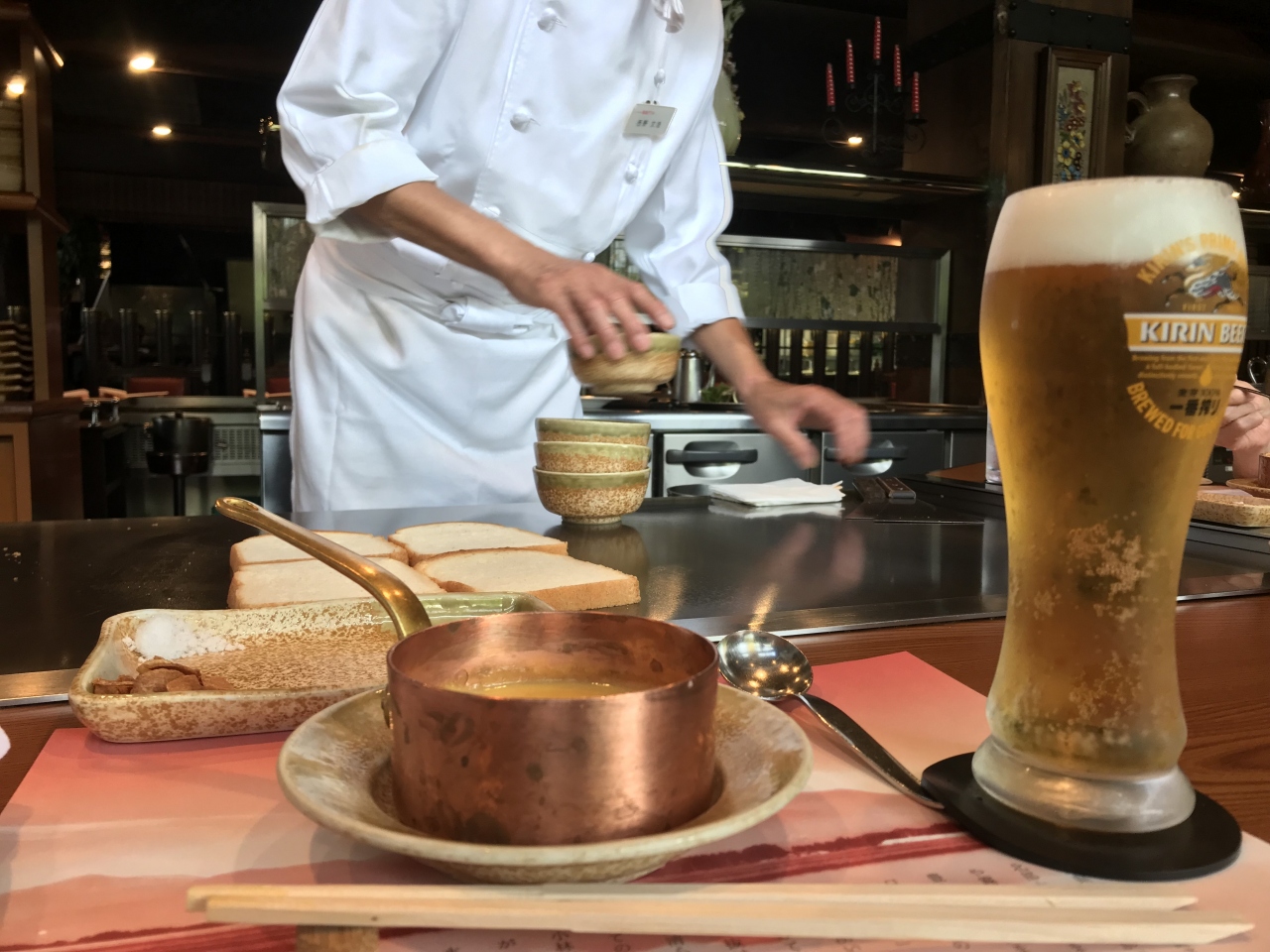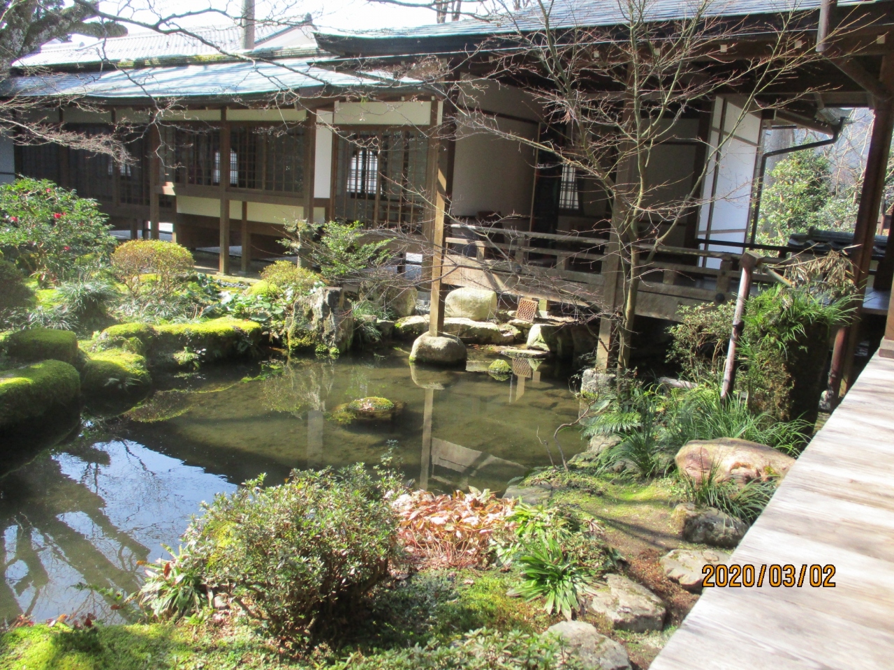 三千院宸殿を出て、木立の有清園を歩き、弁財天を過ぎたところに建っています。比較的新しい堂で、秘仏金色不動明王を安置しています。この金色不動堂に隣接したお茶所で、お茶のサービスがあり、このときは金色不動茶をいただきました。