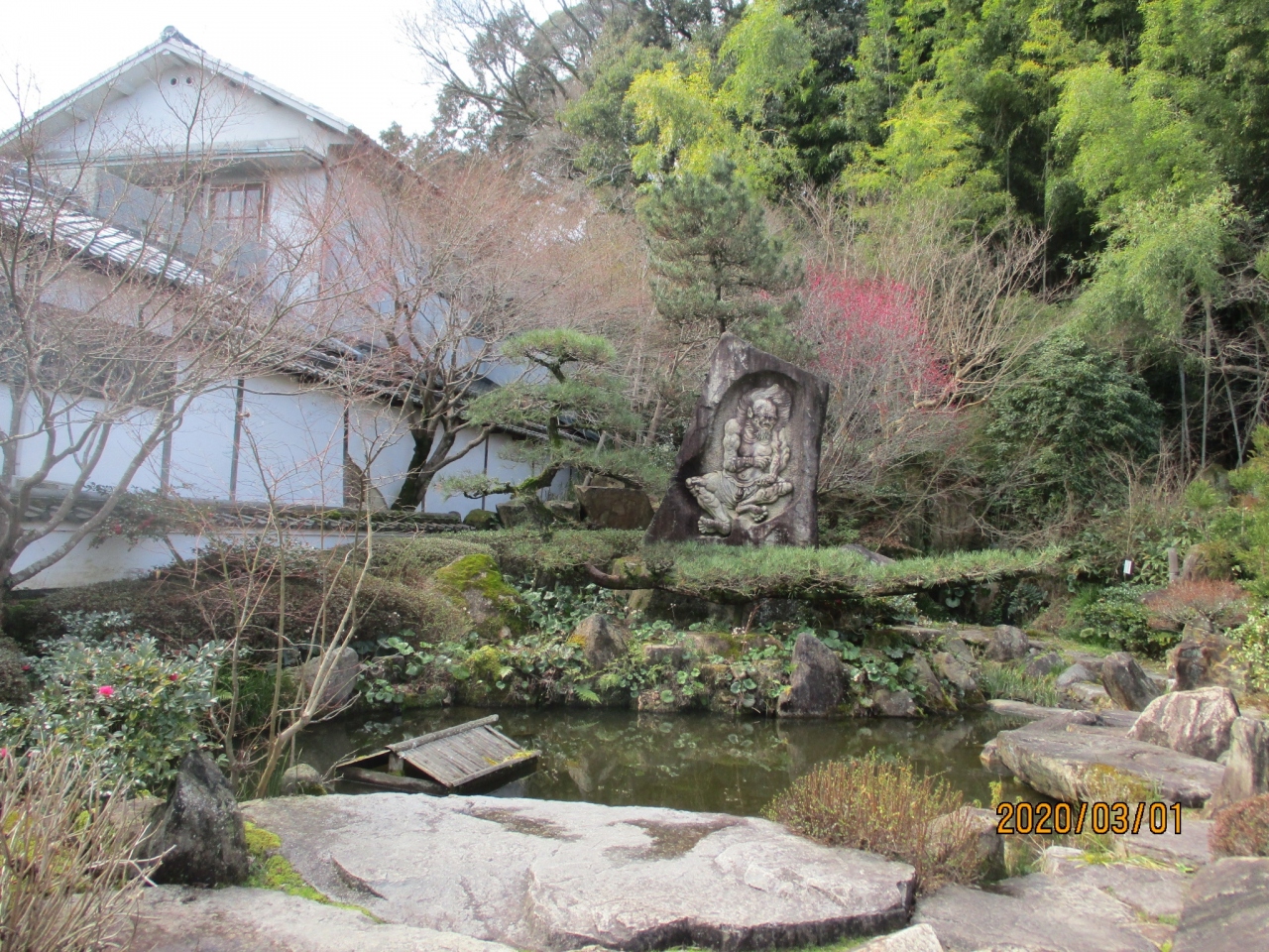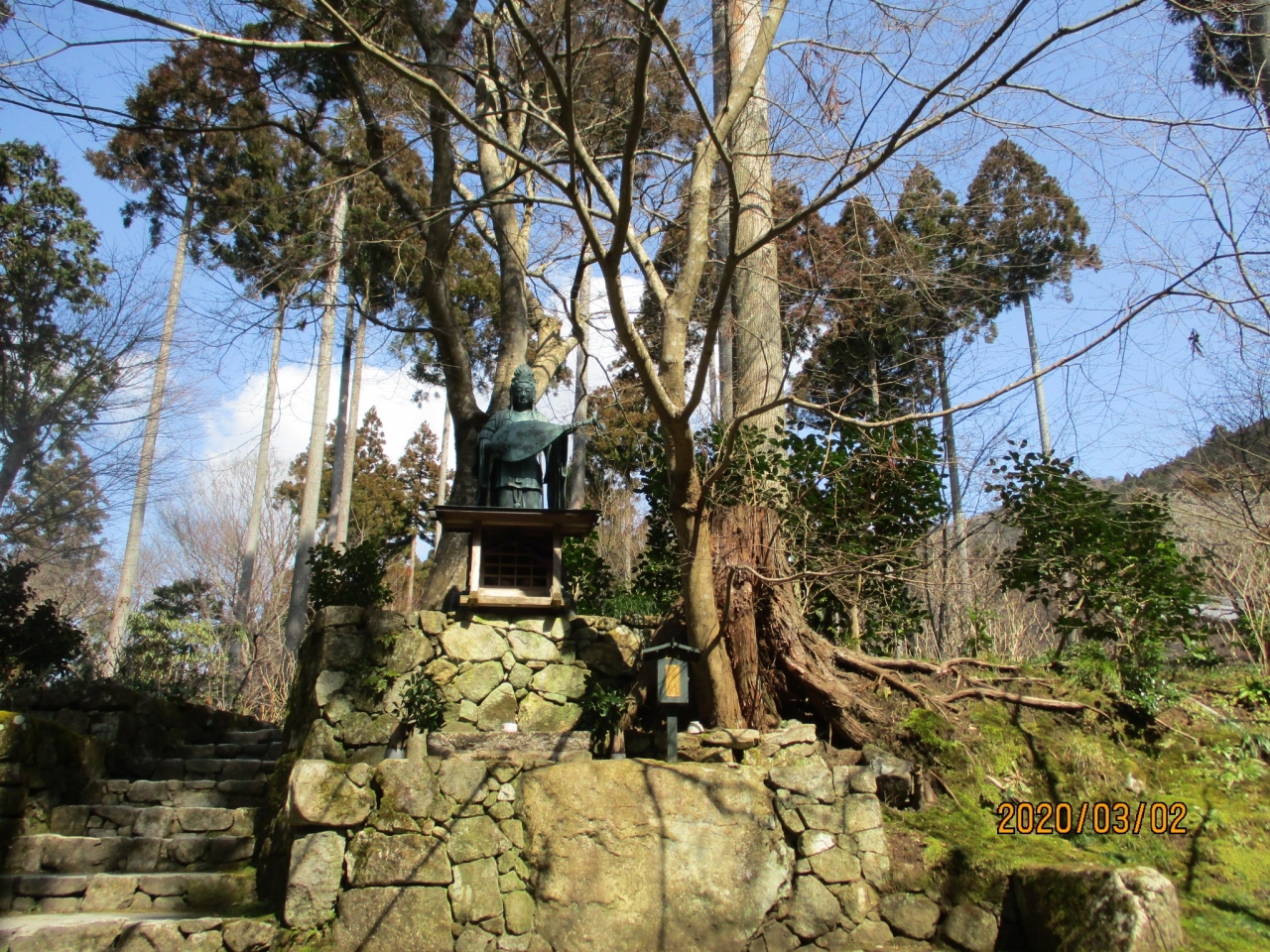 石山寺東大門に隣接している小さな庭園です。朗澄大徳とは、石山寺における屈指の名僧といわれ、教学や図像画に秀でていたといわれています。死後、鬼の姿となって、寺の教えと人々を守ることを誓ったと伝えられています。小さな庭園には鬼の姿を彫った石碑もありました。