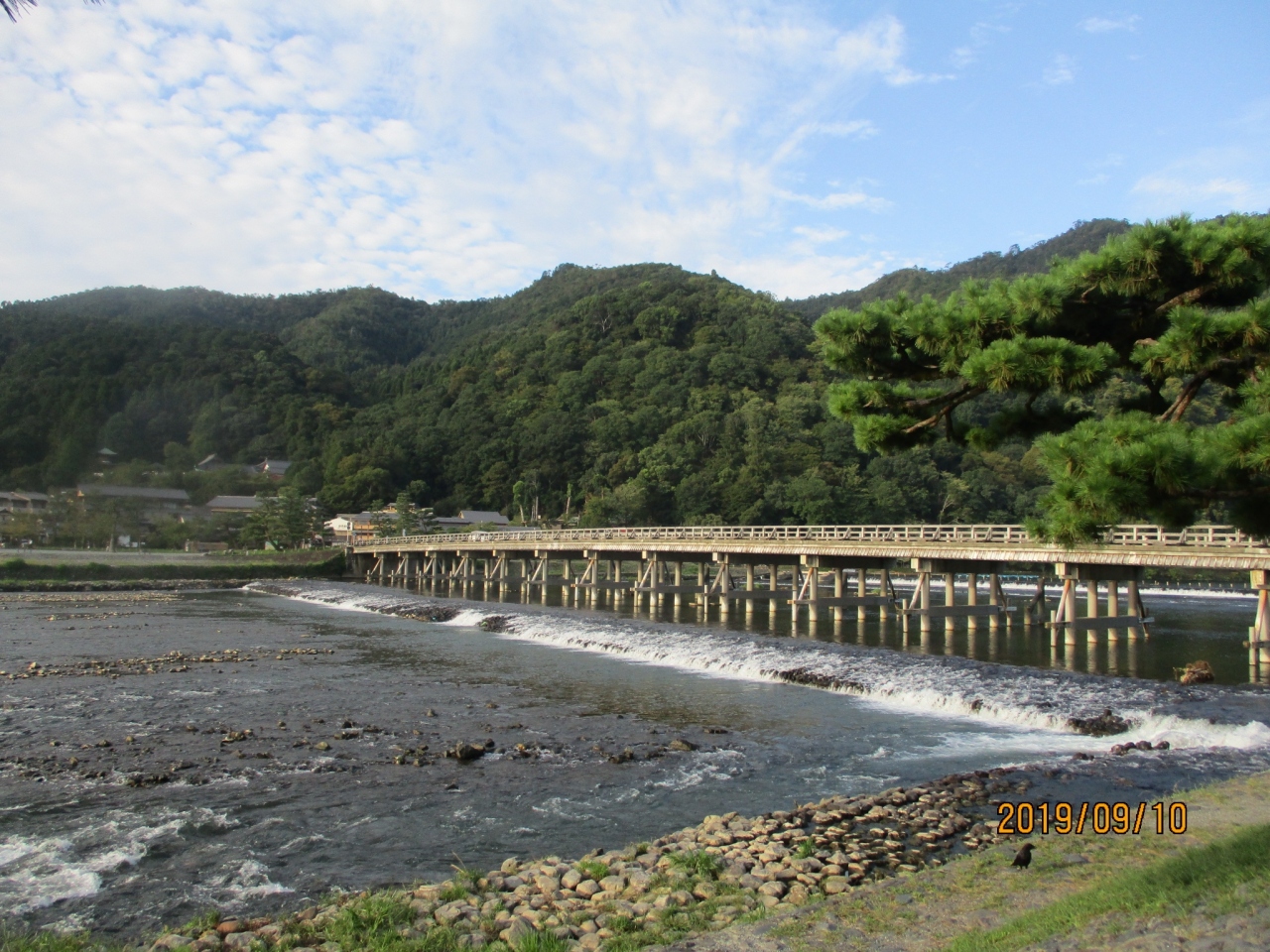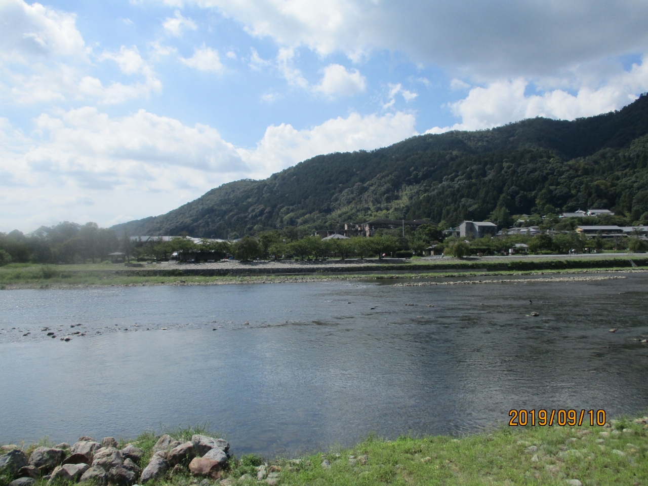 本来、桂川は京都市左京区の広河原を源流とし、亀岡、嵐山を経て淀川にそそぐ河川です。しかし、慣例上、場所によって呼び方が変わるようです。一般的には、渡月橋までを大堰川、それより下流を桂川と呼んでいるようです。渡月橋や川岸に設けられた遊歩道と独特の景観など、桂川は、嵐山にとって欠かすことのできない河川となっています。