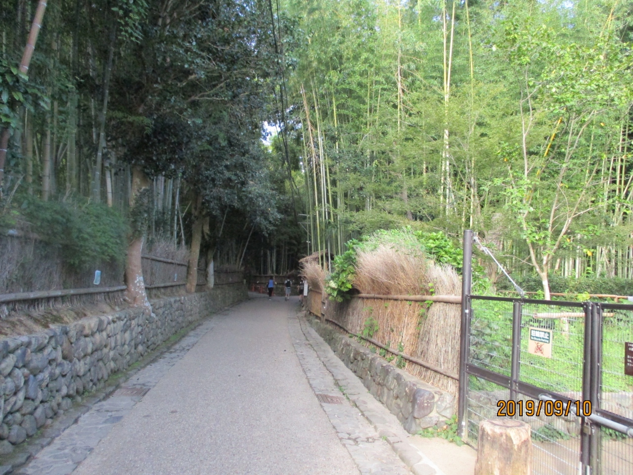 嵐山天龍寺の北方、野宮神社を中心とした一帯に竹林が広がっています。この竹林の中に大河内山荘まで至る小径がつけられ、嵐山の人気観光スポットになっています。道の両側には緑色の立派な竹がつらなり、とても良い雰囲気をかもしだしています。早朝だったので、比較的、観光客も少なく、ゆっくり散策を楽しめました。