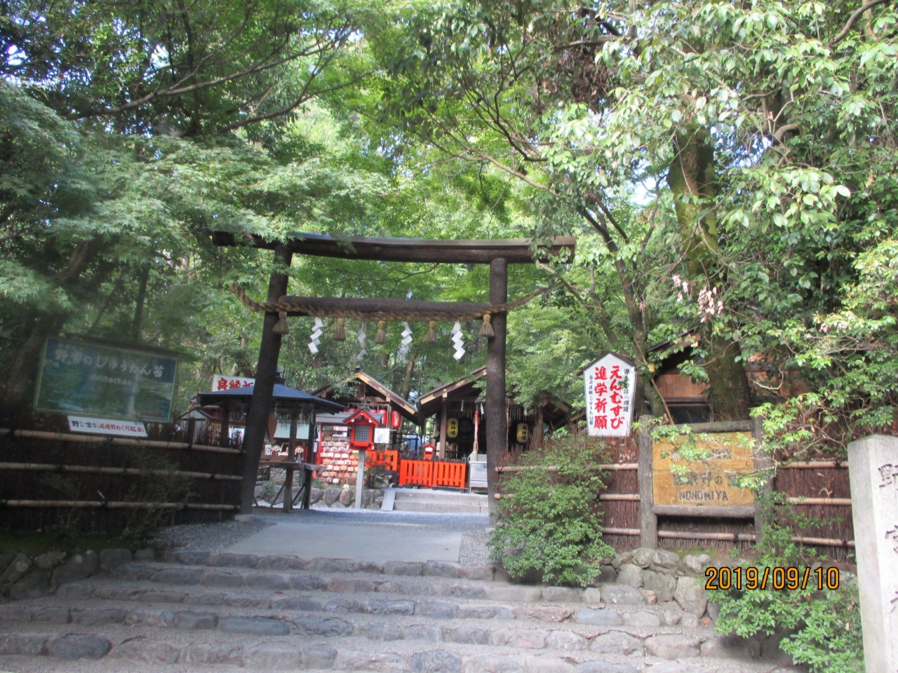 嵐山、天龍寺北方の竹林の中にあり、大河内山荘へ向けて竹林の道を散策する人はおそらく、この神社の前を通ることになります。この神社の黒木鳥居と奥の社殿は、長い歴史を感じさせ、このあたりの雰囲気とよくマッチしています。神社は、縁結びと子宝安産の御利益があるとされ、多くの参拝者が訪れています。