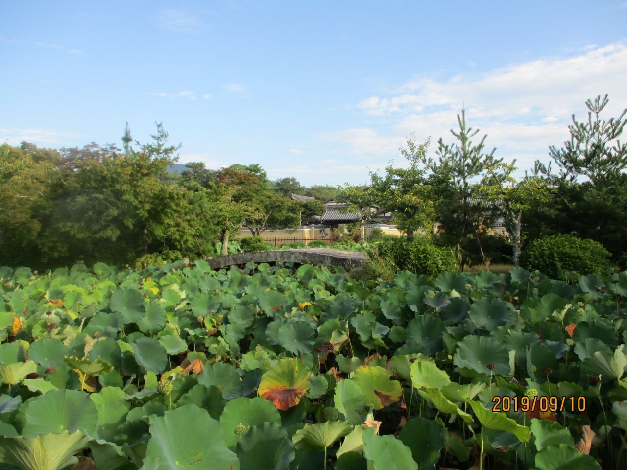 嵐山を代表する人気観光スポット天龍寺の参道わきに放生池があります。ここを訪れた9月には、蓮の花はもう見れませんでしたが、緑色のハスの葉が池全体を覆い、水面が見えないくらいでした。ハスの見ごろは、7月ごろと言われていますので、その時期にまた訪れてみたいと思います。