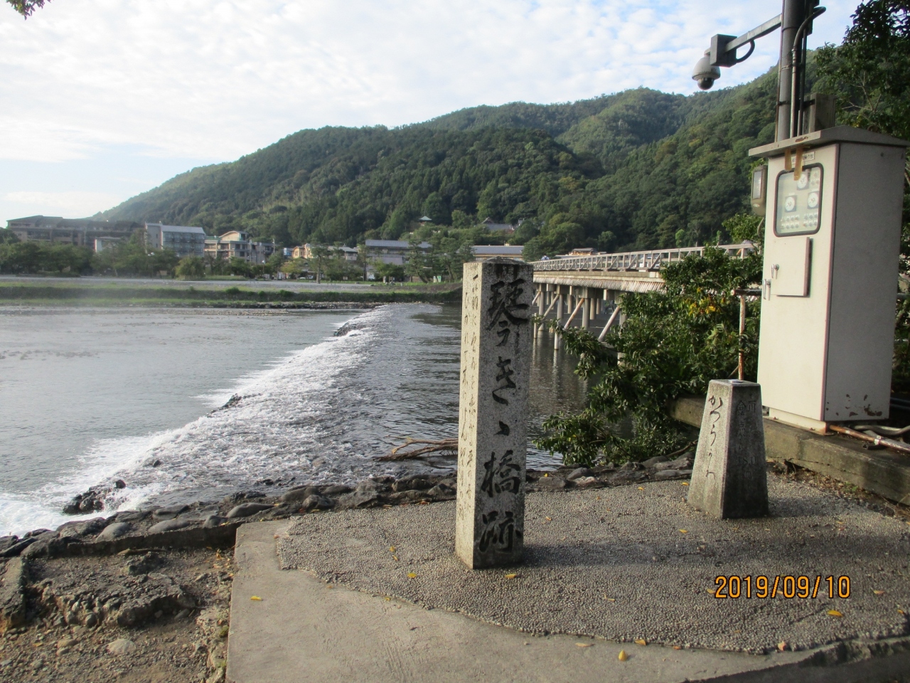 嵐山、最大の観光スポットといえる渡月橋北詰横にあります。平安時代の琴の名手小督にまつわる伝承を知り、これがその石碑かと眺めました。高さ1メートルほどの目立たない石碑でほとんどの観光客は、気にもとめずに通り過ぎていってしまうようです。
