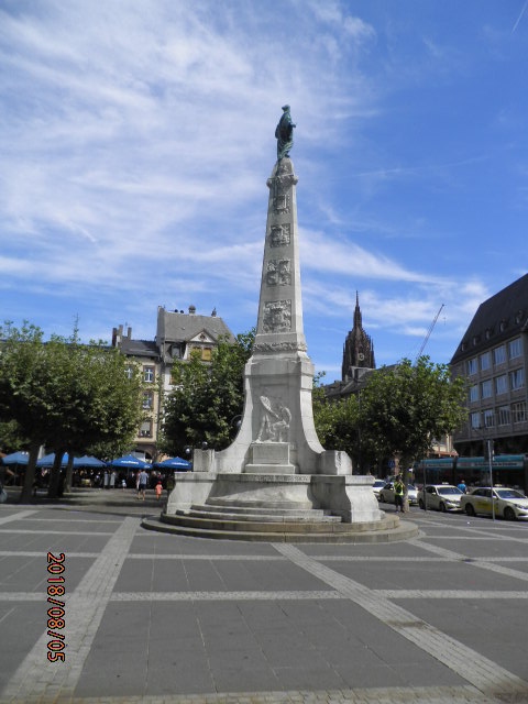 フランクフルト旧市庁舎近く、パウルス教会前にたつモニュメントです。オベリスクを思わせるような建造物で、統一記念碑といわれています。その統一とは、東西ドイツの統一ではなく、普仏戦争後のドイツ統一を指すのだと思います。それにしても、塔の上の人物が誰なのかよくわかりません。
