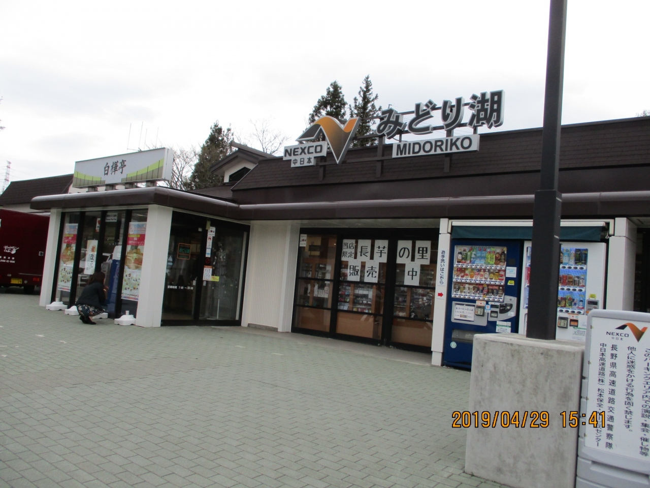 大阪から自動車で長野へ向かいました。名神高速、中央道と走ってこの長野道にはいると、あと少しという気分になります。そこで立ち寄ったのが、このみどり湖パーキングエリアです。パーキングエリアとしては、充実している方かと思います。長野の名産品などを扱う売店とフードコートがあります。