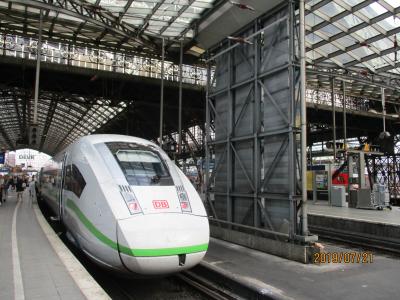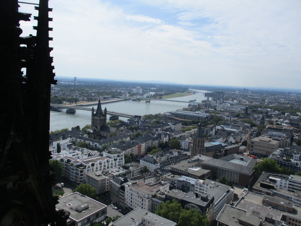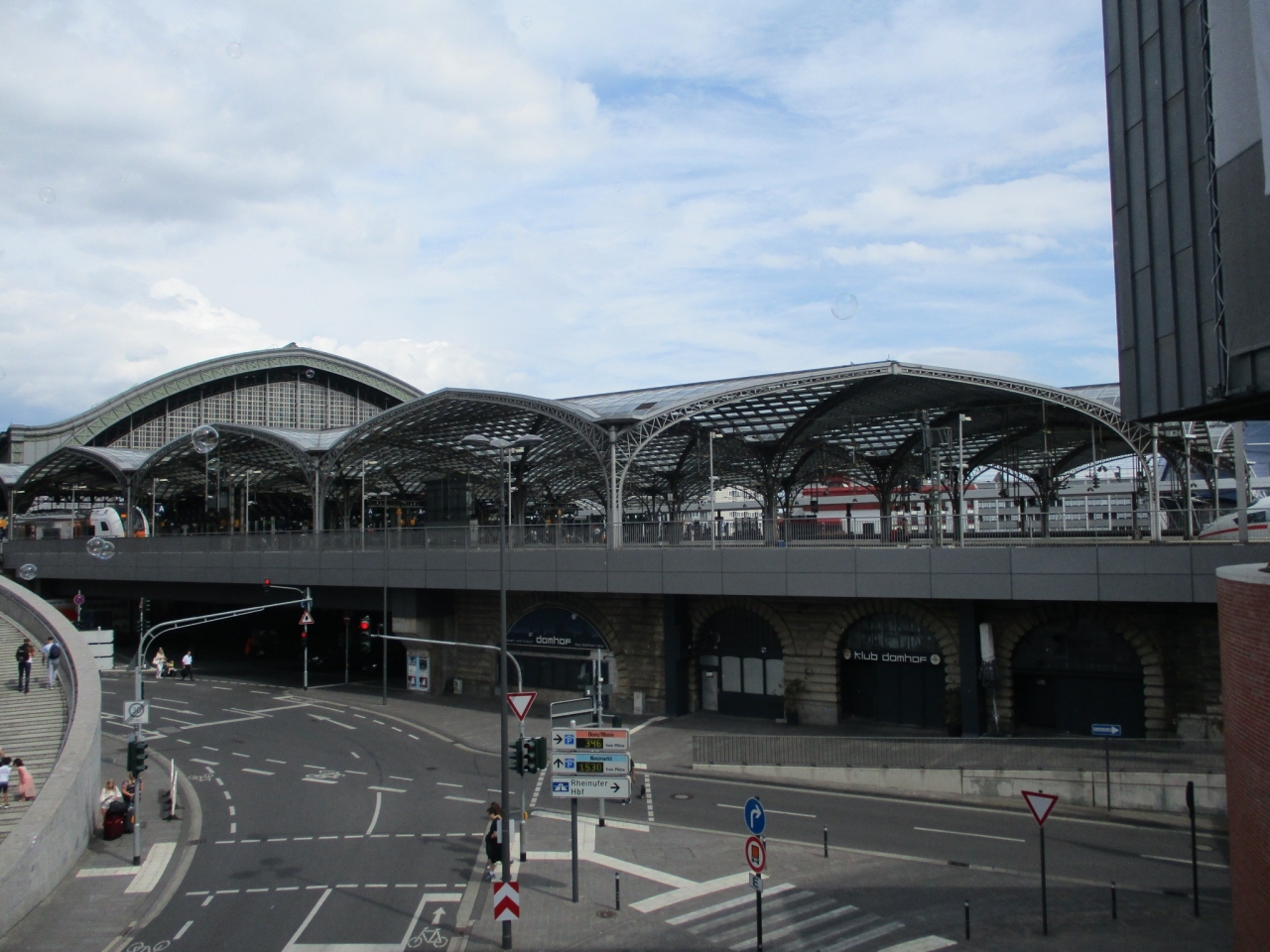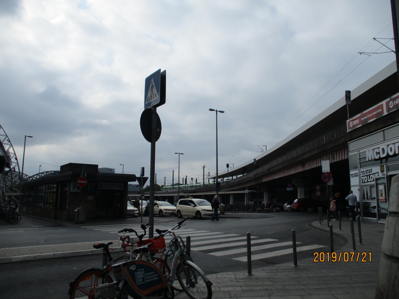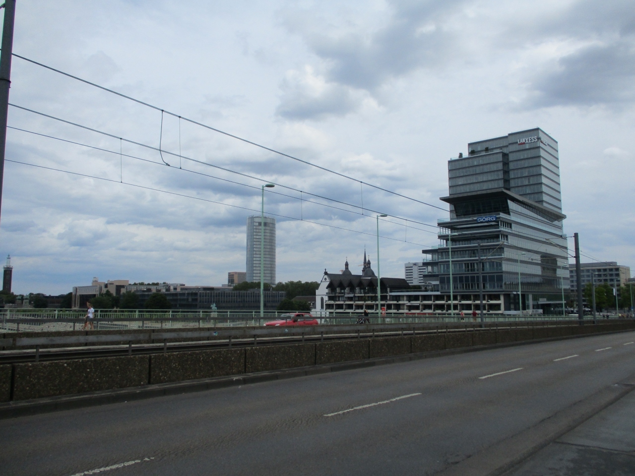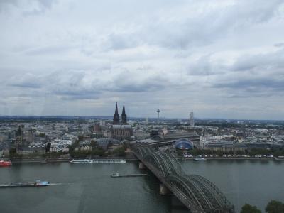 大聖堂の見学を終え、ローマ・ゲルマン博物館の前を通過し、この橋に来ました。ライン川にかかる橋で、対岸のトライアングルパノラマへ行くために、この橋を渡りました。この橋は、鉄道と並行しており、ケルン駅に発着する列車がひっきりなしに横を通過しました。橋は、多くの観光客が行きかい、とても混雑した状態でした。