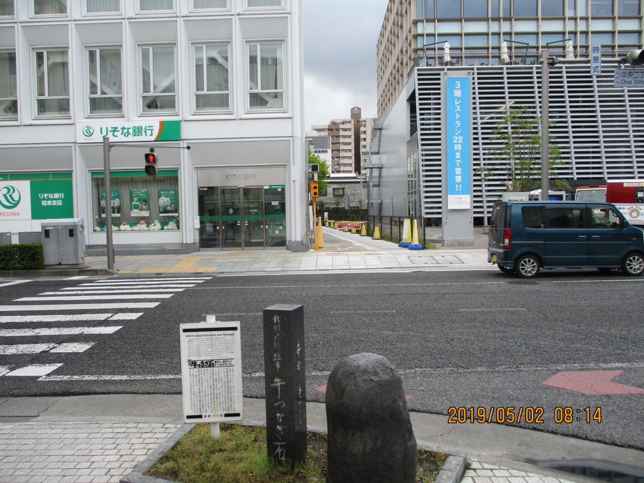 松本城の西方、住宅地のいっかくに整備された小さな公園です。かつての土塁がわずかに復元され、解説を記したパネルもつけられています。ほとんどの土塁は現存していないので、当時の様子を知る貴重な場所といえます。この西総堀土塁公園は、大きな通りからも離れていて、ちょっとわかりにくいところにありました。