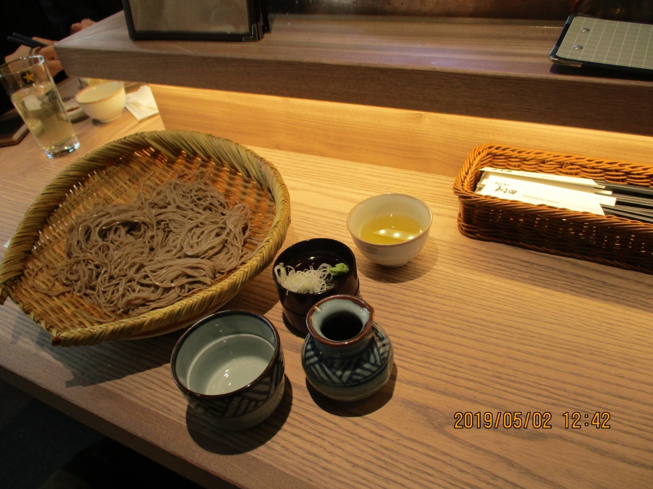 松本市内のファッションビル「パルコ」1階にあるそば店です。ゴールデンウィーク中だったせいか、入るのに、かなり待ちました。店内はそれほど広くはありませんが、かなり繁盛し、活気がありました。ここでは、ざるそばとおやきを注文しましたが、両方ともとても美味でした。