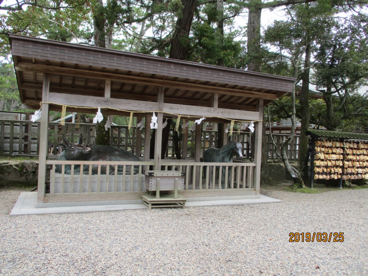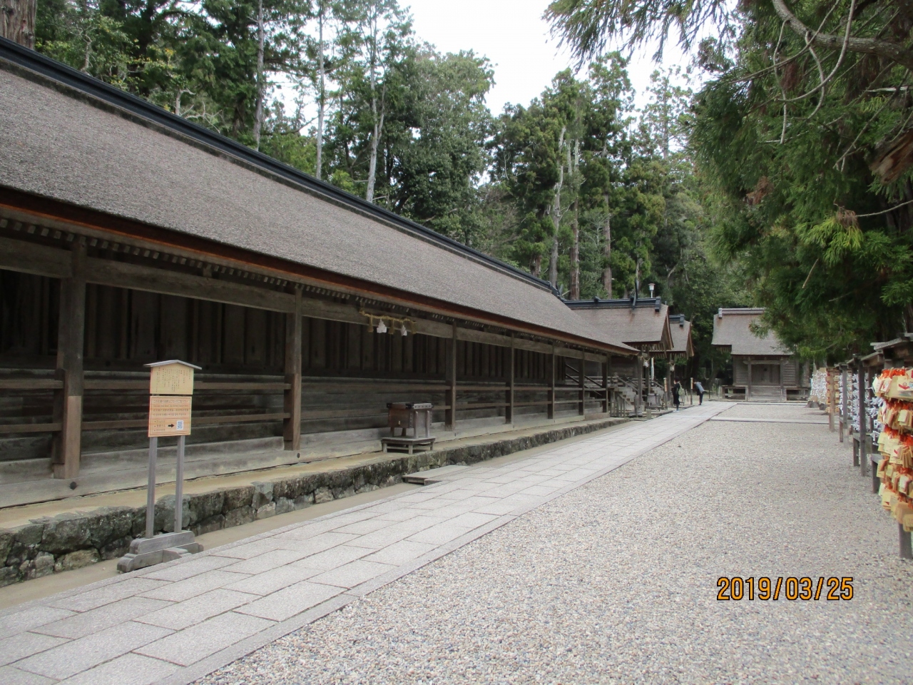 出雲大社境内奥、本殿を挟むように建てられた細長い社です。旧暦の神在月にこの出雲を訪れた八百万の神が7日間にわたって宿泊するところといわれています。普段は、扉が閉ざされていますが、神在月の神議りの期間は、19ある扉のすべてが解放されるそうです。