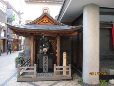 松江京店通り沿いにあります。もともとは、商店街の守り神として、つくられたそうですが、今では、すっかり縁結びの大黒さまとされています。この大黒さまの前で柏手を打ち、何かを祈願すれば、お告げがもらえるらしいのですが、そのことを後で知り、残念に思っています。今度訪れたときは、ぜひ、やってみようと思います。