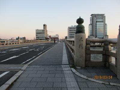 宍道湖と中海を結ぶ大橋川にかけられた橋のひとつです。宍道湖側から数えて2本目の橋で、松江で最初に大橋川にかけられたとされています。もともとは、木の橋だったのですが、今は、このようなコンクリートの橋となっています。橋は片側1車線ずつの道路で他の橋に比べると、交通量は比較的少ないと思います。
