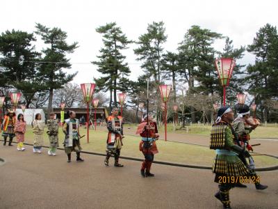 3月下旬から4月上旬の花の時期に合わせて行われる松江城のお祭りです。この時期に桜のライトアップがされたり各種イベントが催され、多くのひとでにぎわいます。私たちが訪れたときは、松江城リレーマラソンが行われ、天守閣近くでは、松江武者応援隊による武者行列を見ることができました。
