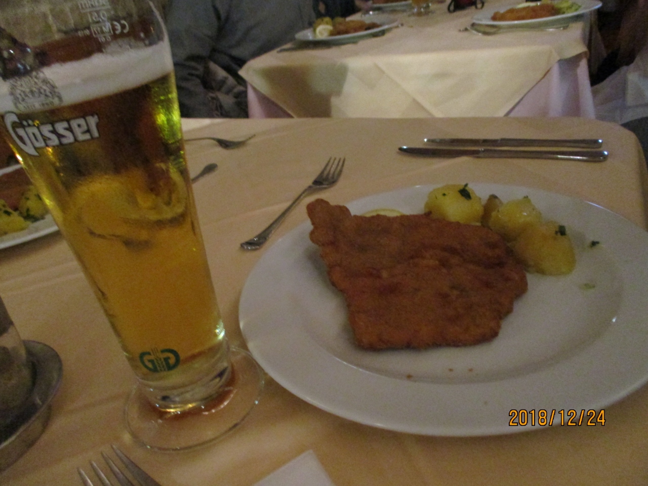 ツアーのディナーで訪れました。わりと気軽に利用できるカジュアルなレストランですが、静かで落ち着いた感じもありました。この時は、ウィナーシュニッツェルがメインでしたが、仔牛肉ではなく、ポークだったので少し残念でした。ビールもデザートもおいしかったです。