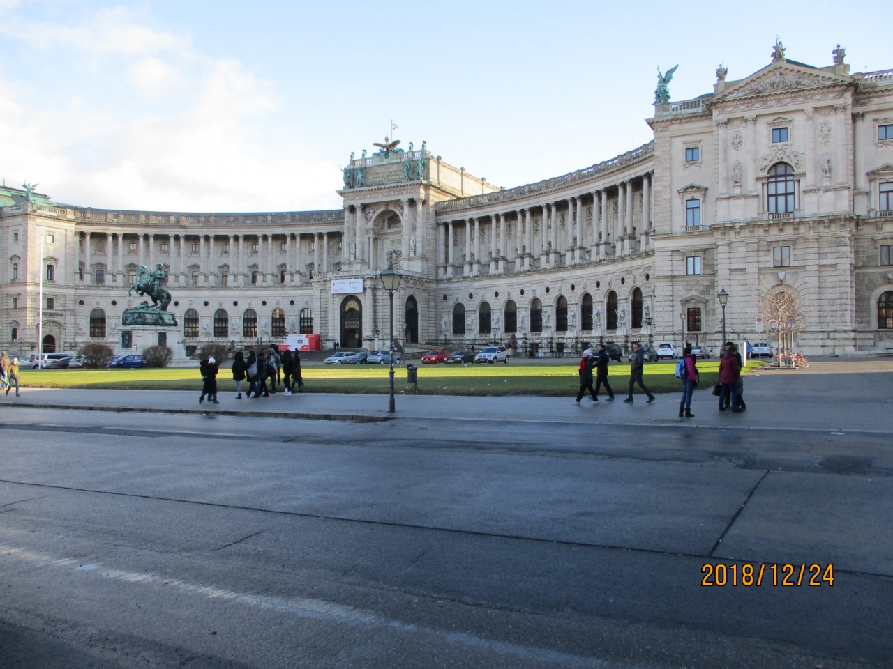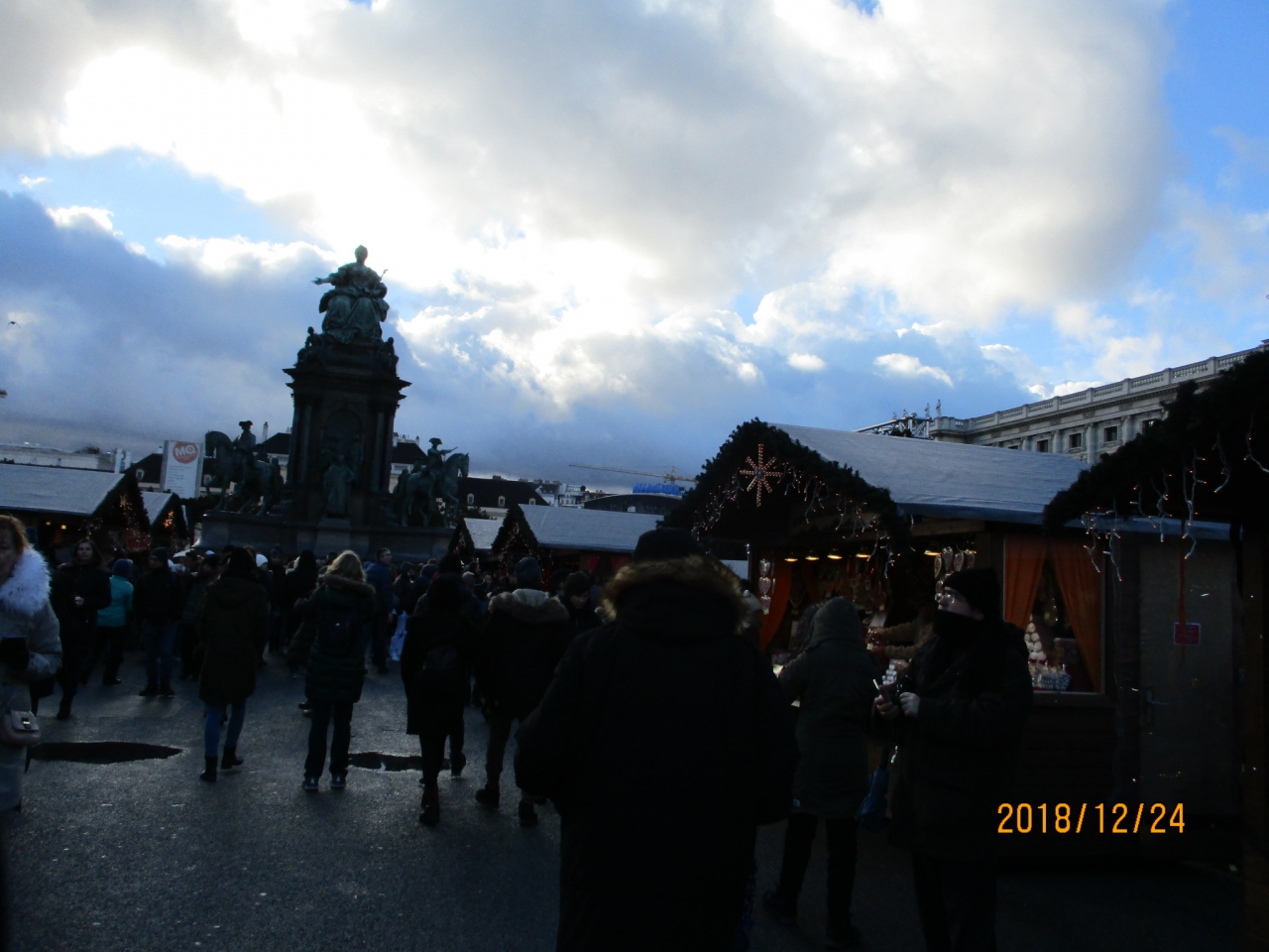 ウィーン王宮の通りを挟んだ向かい側にある広場です。自然史博物館と美術史美術館に挟まれ、中央に18世紀の女帝マリア・テレジアの像がたっています。ここを訪れたのは、12月24日で、クリスマスマーケットがひらかれ、多くの出店がならび、とてもにぎわっていました。