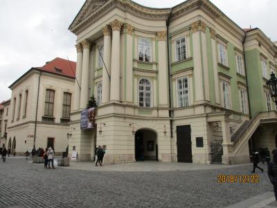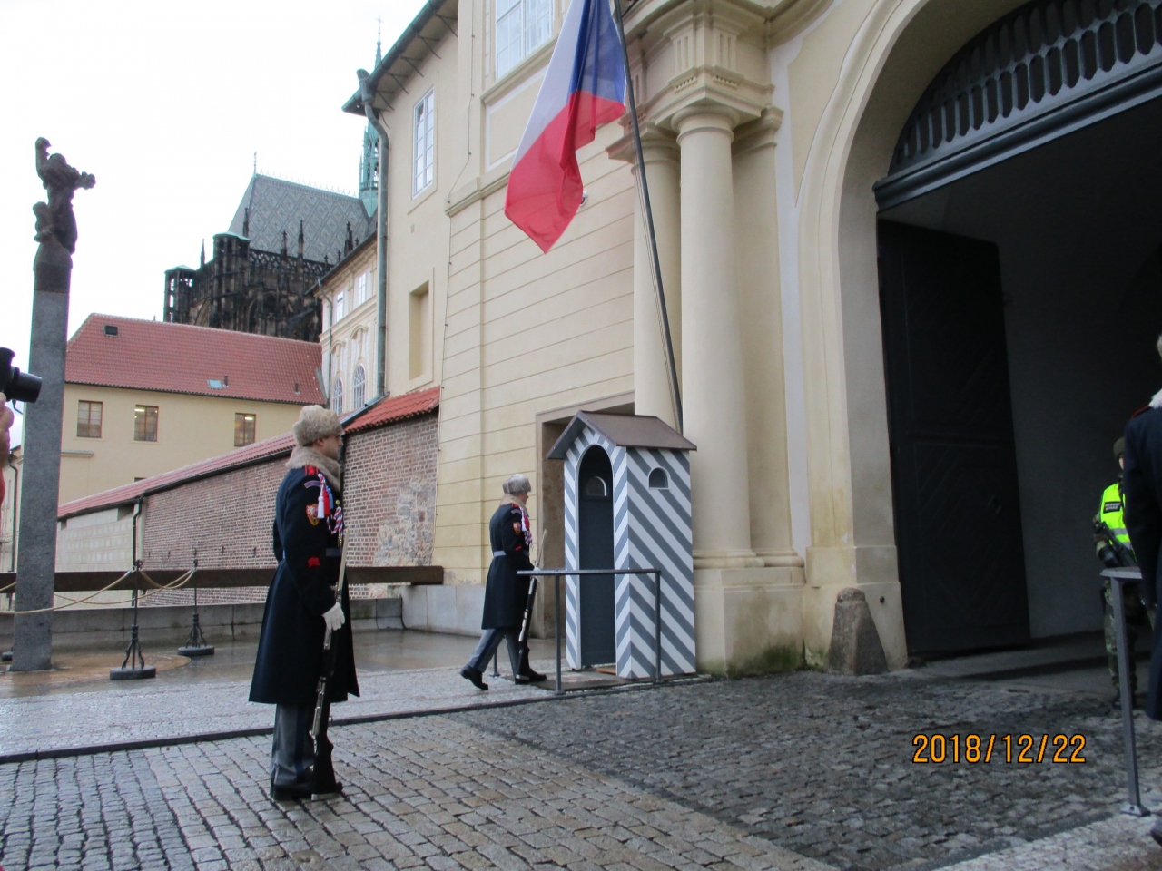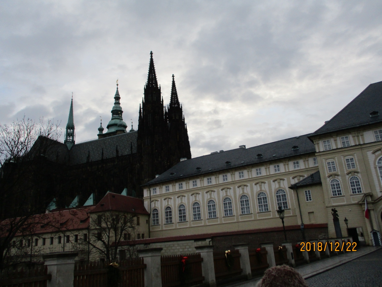 観光客で混み合うといわれたので、プラハ城には比較的朝早く、出かけました。ゲートを入り、第一の中庭に入る門の前で衛兵が立っており、ちょうど偶然にその衛兵の交代式を目にすることができました。この時は、観光客もそれほど多くなく、じっくりと見ることができて、満足しました。