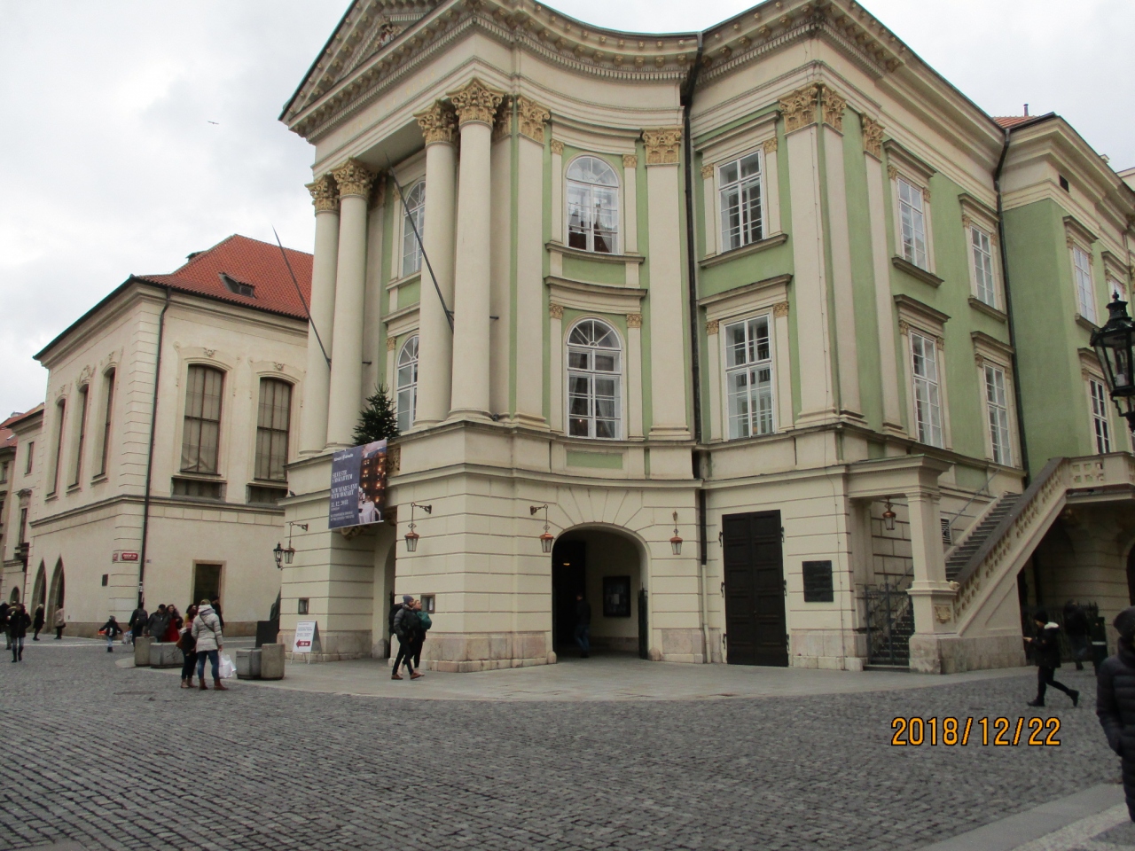 プラハの旧市街広場から、南のヴァーツラフ広場へ向けて歩いている途中に、見つけました。とても美しい建物で、モーツアルトのオペラ「ドン・ジョバンニ」が初演されたことや、映画「アマデウス」のオペラシーンが撮影されたことなどで知られています。訪れたときは、入り口は閉ざされ、中に入ることができませんでした。