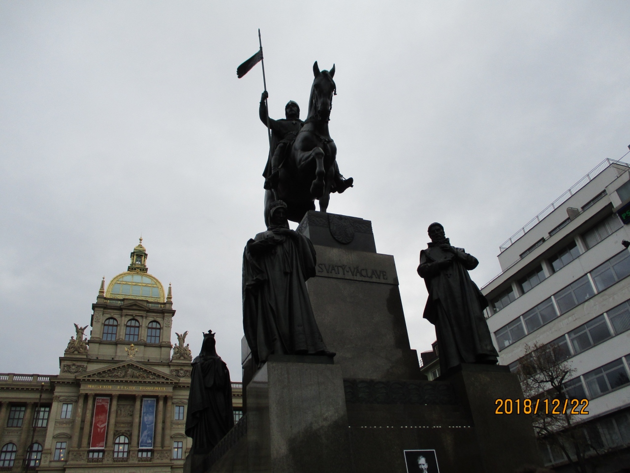 プラハ地下鉄ムーステク駅からヴァーツラフ広場に入りました。騎馬像は、広場の南側に国立博物館をバックにたっていました。プラハの春弾圧に抗議する青年がこの騎馬像の前で焼身自殺をはかったといわれていますが、このヴァーツラフ像はプラハの人々にとってかけがえのない精神的支柱であり続けたように思います。