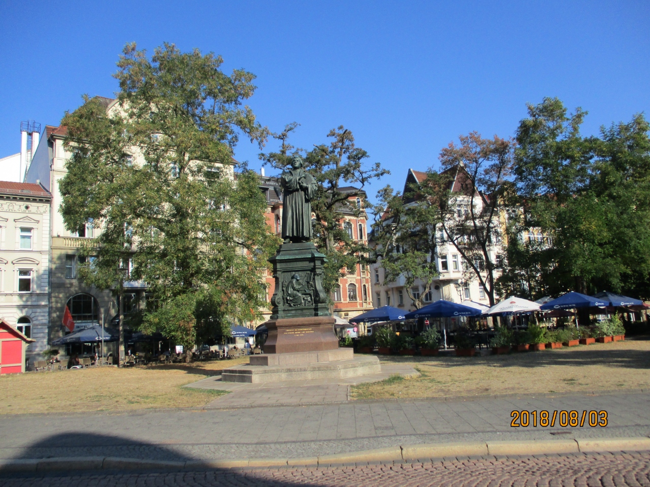 アイゼナッハ中央駅から旧市街のほうへ向かって続く駅前通りです。通りは、車道と歩道があり、車道は車が行き交っています。この通り沿いにホテル「カイザーホフ」がたっている以外、特に、目立った建物や、お店などもあまりなく、やや殺風景な感じの通りでした。