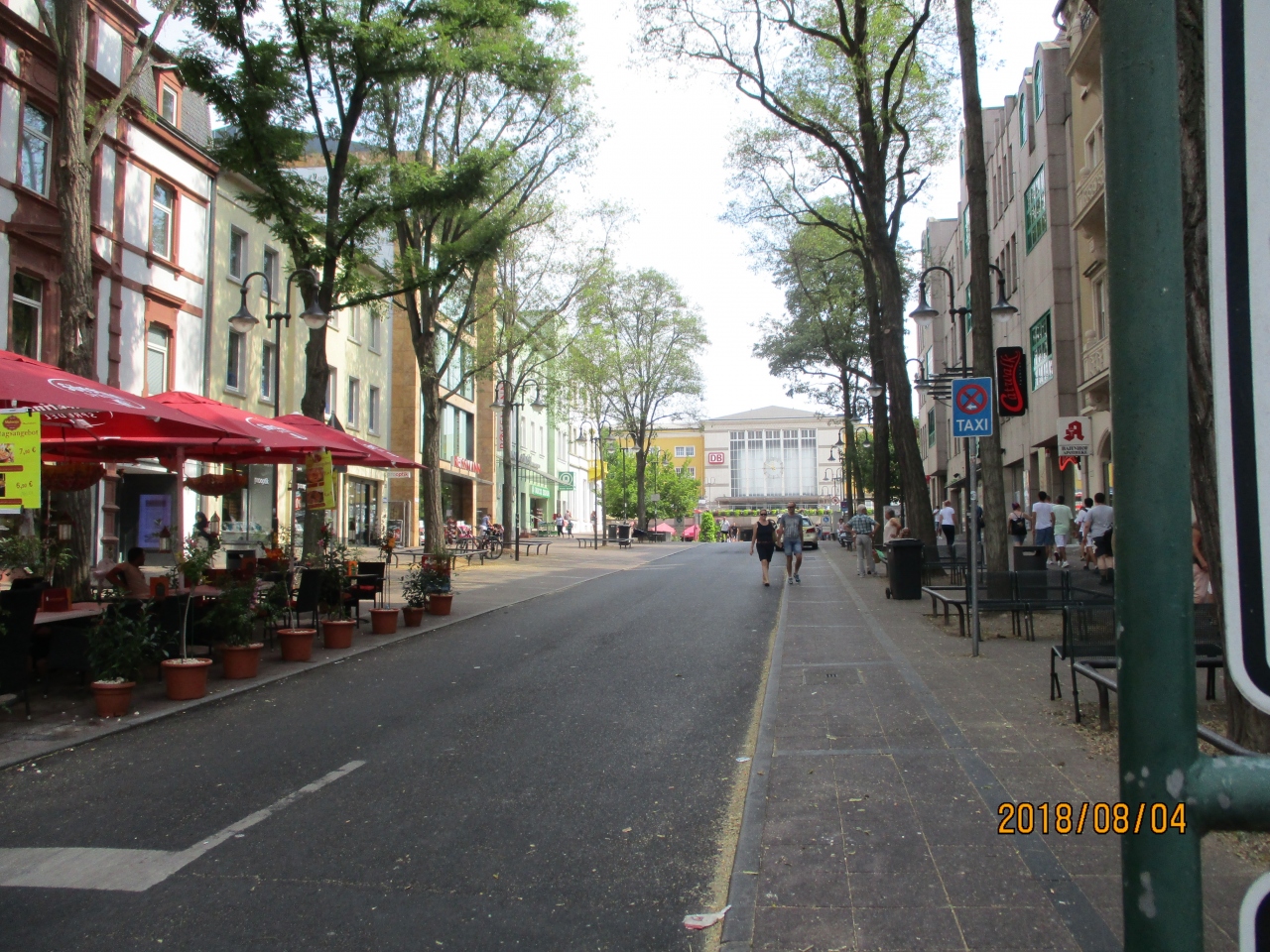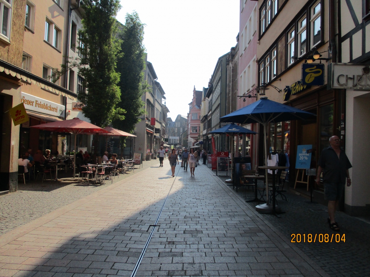フルダ中央駅からこの街の観光スポット「市宮殿」や「大聖堂」の方へ、緩やかに下っていく坂道です。通りの両側には、色々な店が並び、多くの人が行き交っています。また、デパート「ガレリア」や「カールシュタット」もあり、まさにこのフルダのメインストリートとなっています。