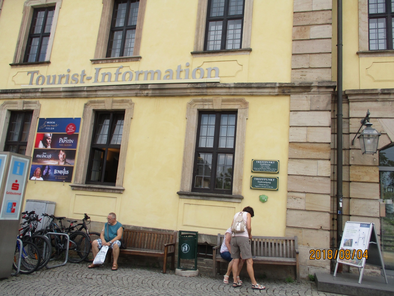 中央駅から市宮殿や、大聖堂をめざしてバーンホーフ通りの坂を下っていくと、ショッピングエリアのちょうどはずれ、市宮殿のほぼ向かいにあります。フルダは、それほどポピュラーな観光地ではないとおもうのですが、インフォメーションを訪れる観光客が非常に多く、ちょっと驚いてしまいました。