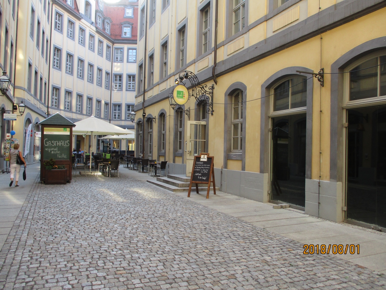 ライプチヒ旧市街のマルクト広場近くのメードラーパッサージュというアーケード街の地下にあります。通りの両脇から、地下へ降りてゆく階段があり、ちょうど通りの下に店が設けられています。ライプチヒ大学で法律を学んでいたゲーテがよく通った酒場だといわれ、『ファウスト』にも登場するため、観光スポットとなっています。訪れたのが、2度とも午前中で、店はまだ開店しておらず、地下入り口から中をのぞくだけでした。