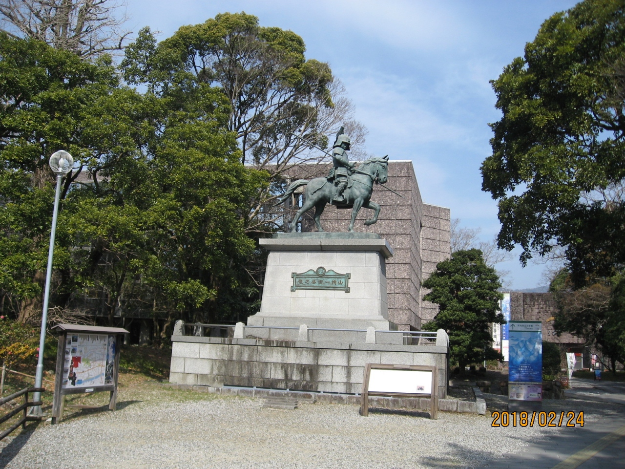 高知公園から、高知県立文学館へ向かう途中にたてられていました。山内一豊は、土佐山内家の初代藩主で、関ケ原の合戦以降、家康から、土佐を与えられこの地の藩主となり、土佐山内家の礎を築きました。手に槍を持ち、馬にまたがった姿はとても勇壮な印象を受けました。