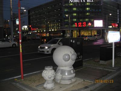 高知市内の観光名所はりまや橋近く、はりまや交差点のところにたっています。アニメ「アンパンマン」の作者やなせたかしが高知出身ということからでしょうか、人気アニメのキャラクターアンパンマンとバイキンマンの石像が歩道にたっていました。