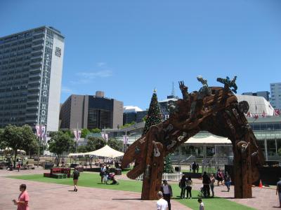 オークランドフェリーターミナルから西へ徒歩約10分のところにあるヨットハーバーです。多くのヨットが係留され、ヨットで埋め尽くされているような感じがしました。このヨットハーバーに沿って、しゃれたカフェやレストランが並び、そのテラス席では、ヨットを眺めながら、観光客や地元の人が、食べたり飲んだりしていました。