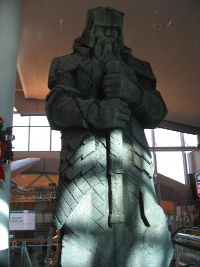 日本からの直行便は、たぶん、すべてがこのオークランド国際空港に到着します。また、ニュージーランドで最も大きな空港ではないかと思います。ニュージーランドの国内線は、このターミナルではなく、国内線専用のターミナルから発着し、乗り継ぐ場合は、バスなどでそちらへ移動しなければなりません。日本との往復にこの空港を利用しましたが、空港内は、割と広々として明るい印象を受けました。
