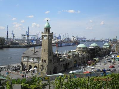 Sバーンのランドゥングスブリュッケン駅でおり、丘の上に続く階段を上っていくと、アルターエルプ公園の一角にでます。この公園の「ブドウ畑のテラス」からは、ハンブルク港の素晴らしい眺めを楽しむことができます。また、この公園を北の方に進んでいくと、ドイツ最大といわれるビスマルク像がたっています。ただ、像の台座に落書きがたくさんあり、ちょっと残念でした。