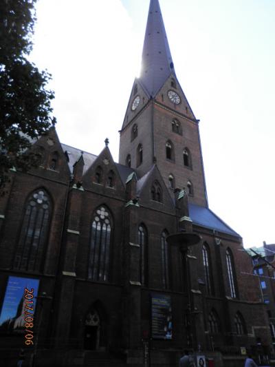 ハンブルクで最も有名な教会で、おそらく多くの日本人観光客が必ずといっていいほど、訪れるスポットだと思います。教会堂内部は、壁が白く、窓が大きく、とても明るい印象を受けました。この教会は、高さ132メートルの塔があり、長い長い階段をのぼって、上にでることができます。そこからは、ハンブルクの市街を一望でき、素晴らしい景色を堪能することができました。