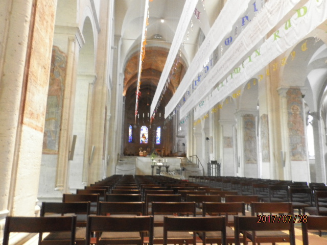 ブラウンシュヴァイク旧市街、ブルク広場に面して建てられています。大聖堂といっても、規模はそれほど大きなものではありません。堂内に入ると、言語をきかれ、日本語のパンフレットを手渡してくれました。とても親切な印象を受けました。内部は、礼拝席が中心に寄せられ、正面祭壇にイエスとマリアのレリーフがありました。また、ハインリヒ獅子公と妻マチルダの棺が祭壇近くに置かれていました。