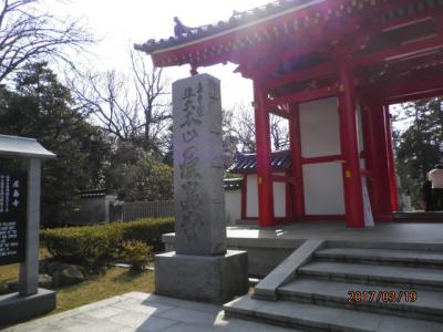 天平年間に唐僧鑑真によって、創建されたと伝えられる古刹です。鮮やかな朱塗りの山門、本堂は国の重要文化財に指定されている歴史ある建物などがあります。本堂横には、狸を祀る「蓑山大明神」があり、いくつも並ぶ赤い鳥居と、その両側に狸の石像があるのが印象的でした。