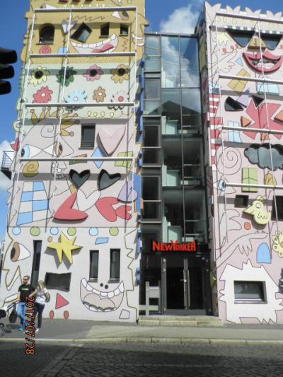 ブラウンシュヴァイクのデパート(ガレリア)から、マグニ教会方面に向かって、東へ歩きだすと、とても奇抜な外観を持った建物に出会います。派手な色と不思議なイラスト(図柄)の建物は、まわりの風景とミスマッチで、よく目立ちます。いったい、何の建物かと思い、入ってみようとしましたが、入り口はロックされ、入ることができませんでした。