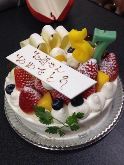 ケーキは、予約すれば希望の絵を書いてくれたり、デコレーションの相談に乗ってくれます。今回は、キャンドルを別途購入し、普通の生クリームデコレーションケーキに、チョコレートのリボンを追加(追加500円)、フルーツの追加をし、3800円でした!