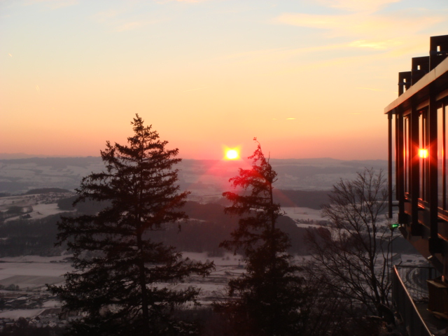 Uetlibergまでの行きかたは、チューリッヒ中央駅よりS10の電車に乗り終点で降りれば(所要約20分)、駅前に標識がありますのでそれに従って進んで行くと頂上に着きます。駅から頂上までは約10分くらいです。S10の電車は30分おきに出ていますので時間を合わせて出発すれば市内から2~3時間で往復出来ます。