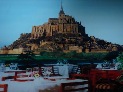 ホテルのレストランからもモンサンミッシェルがすぐ近くに見えて、天気が良ければそとのテラスで朝食をとることも出来るみたいです。朝食は、まぁこんなものかな・・・って感じでした。種類はあまりありませんでした。