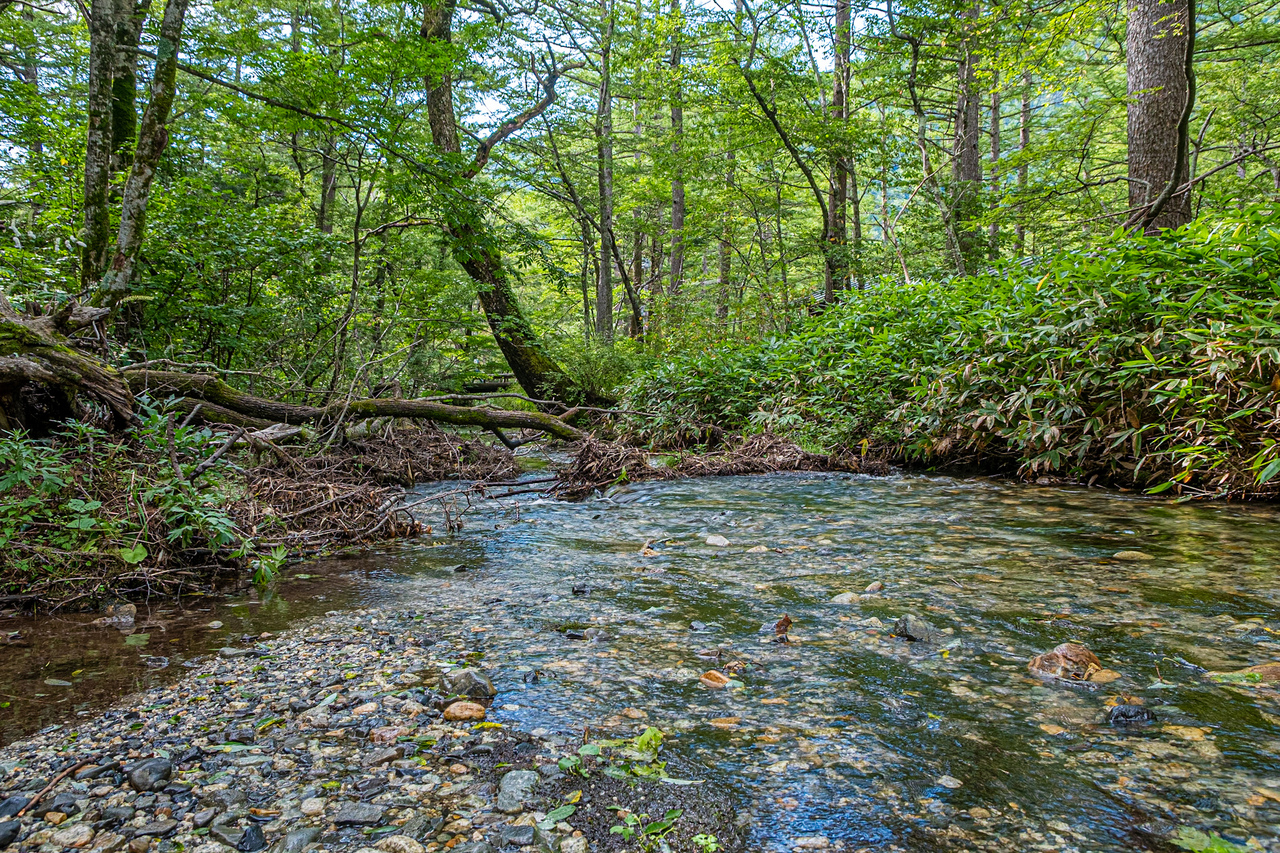 原生林の中に溶け込んだどこまでも続く透き通った湧き水が本当に素晴らしい。