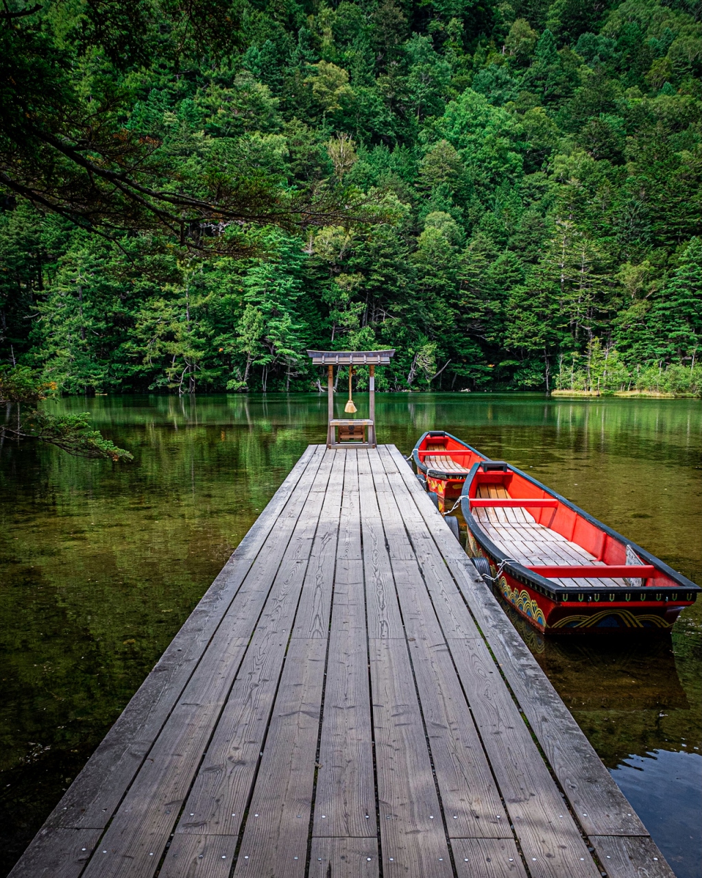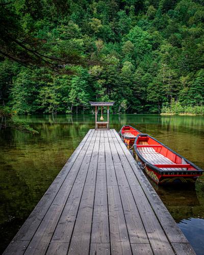 池にせり出す桟橋に小さな祠と鳥居が鎮座しており、水鏡のように周りの風景を映しこむ姿が言葉にならないほど美しかったです。