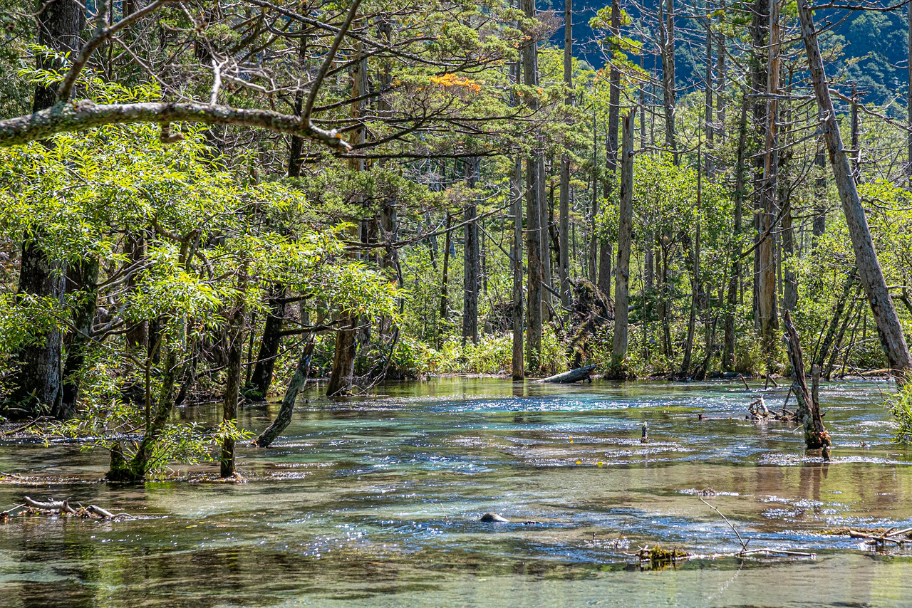 河童橋から遊歩道を歩く事10分程の場所に広がる岳沢湿原。