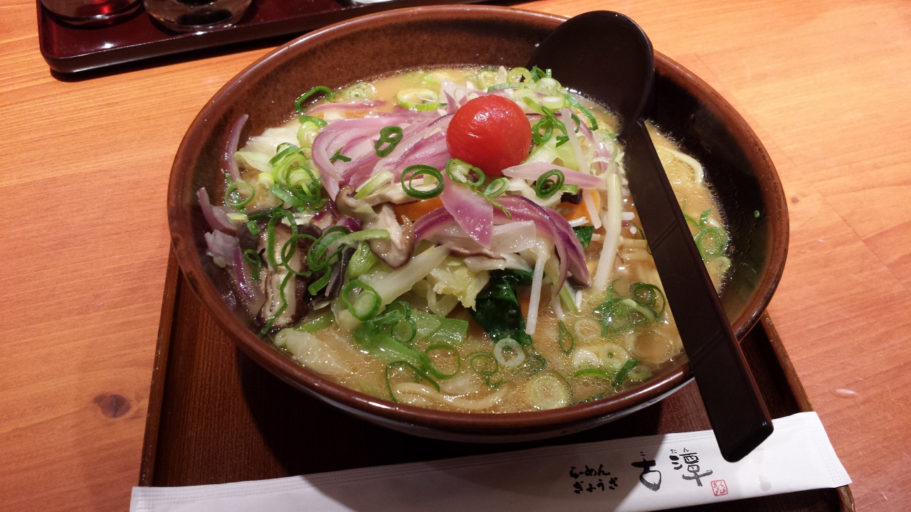 阿倍野ハルカス12階に入っているラーメン屋さん。チェーン店ですが、味はそれなりにしっかりしていると思います。当店限定の野菜ラーメンを頼みました。チャーシューはありません。野菜だけですがおいしくいただけました。