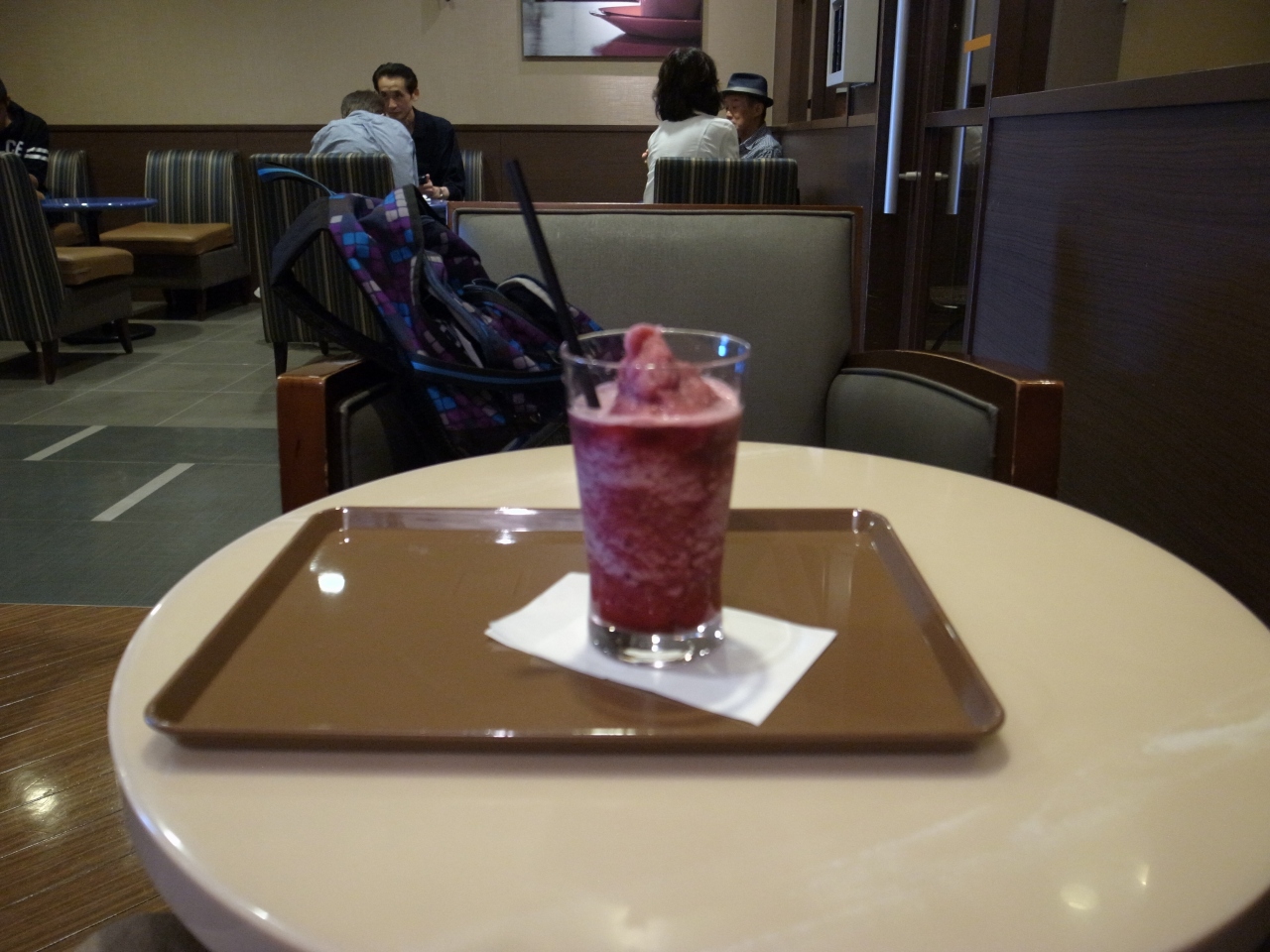 奈良は盆地である。夏は暑い。奈良の駅前をぶらぶらしていると耐えられないぐらいになってくる。適当なカフェはここ、サンマルクカフェぐらい。ふらりと涼を求めて入店。ぶどうスムージーがおいしそうでオーダー。ちょっと値段は高いが悪くない。
