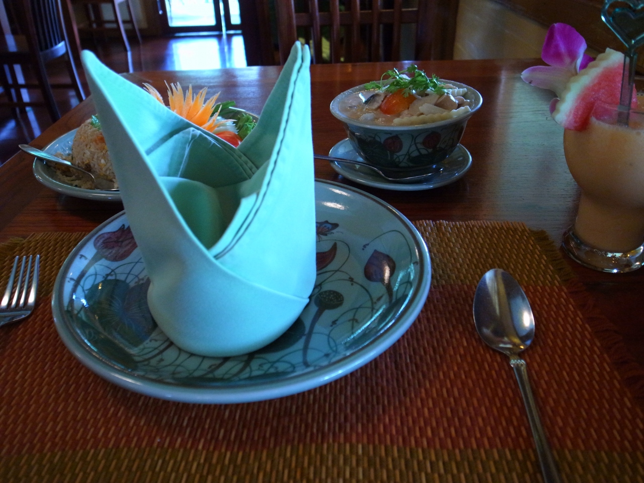 チェンマイではおそらく最高級の部類に入るレストラン。とはいっても一人1000円~2000円程度なので日本の感覚からすると安い。雰囲気はとっても良い。靴を脱いで2階で食事をとる。盛り方もきれいだし、実際おいしかったです。値札の金額以外にもサービスチャージが10%かかる。街の中心からは離れたところにあるので、トゥクトゥク、レンタルバイク等で行く。