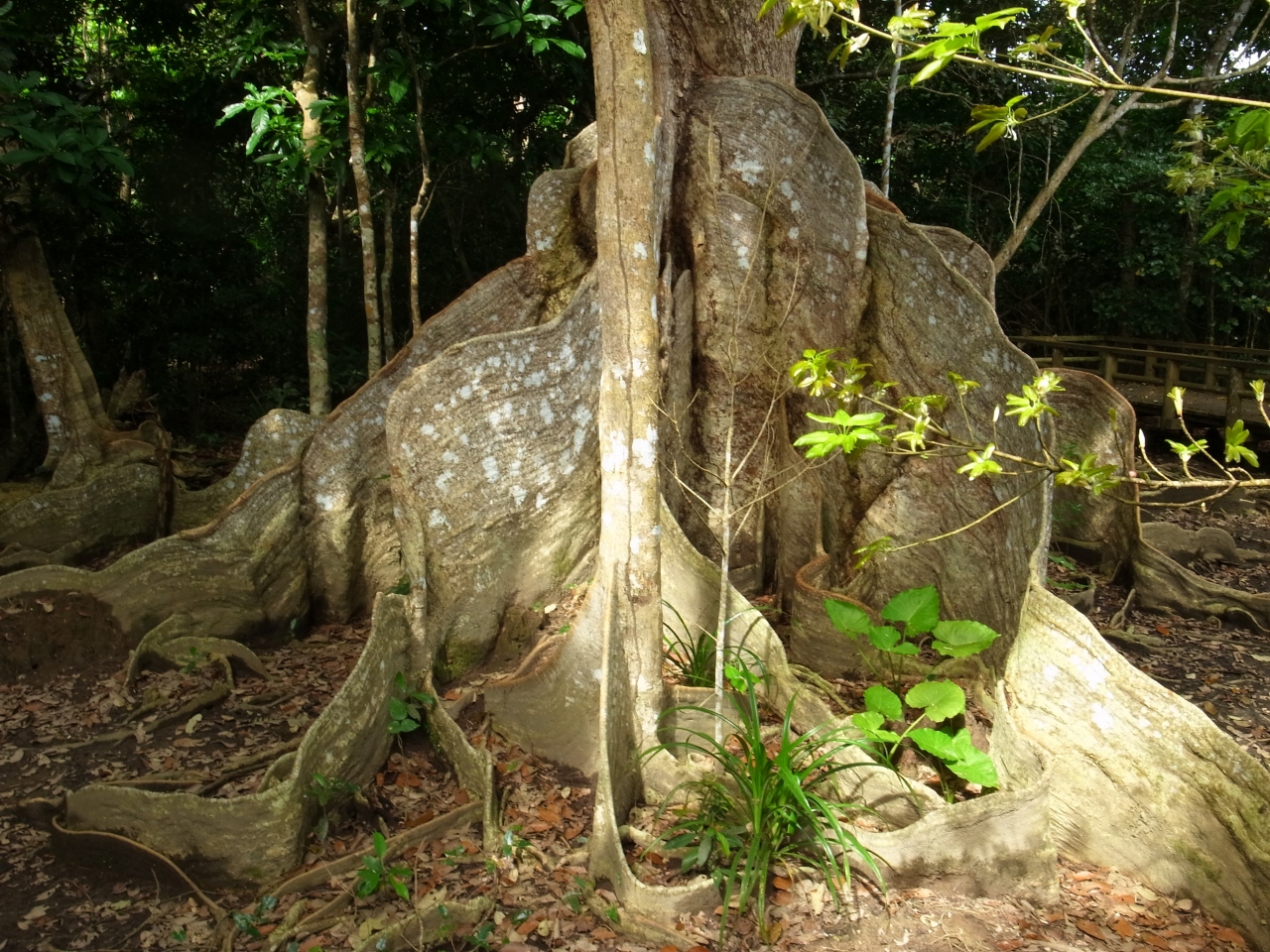 仲間川のマングローブクルーズで上流にさかのぼっていくと、桟橋が見え、その先にこの巨木と対面でします。平たく突き出た不思議な根、板根(バンコン)が特徴的。なかなか見れない光景ではあるので、しっかり目に焼き付けましょう☆